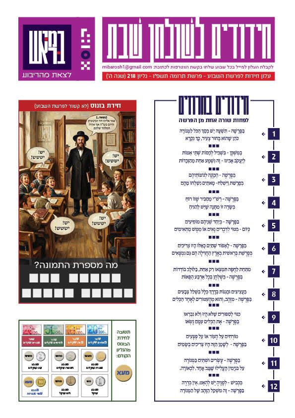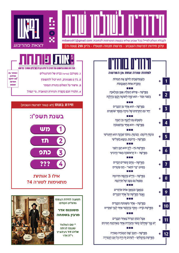 כל עלוני "חידודים לשולחן שבת" שיצאו במהלך 5 השנים האחרונות — מסודרים לפי שנים ופרשות.